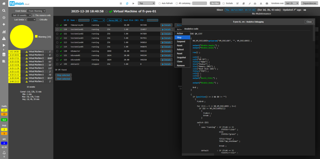 fdmon cloud is specifically designed for monitoring, diagnostics, trending, event, incident, capacity and configuration management, prediction, testing and experimentation, and more generally for IT data and metrics driven activities.