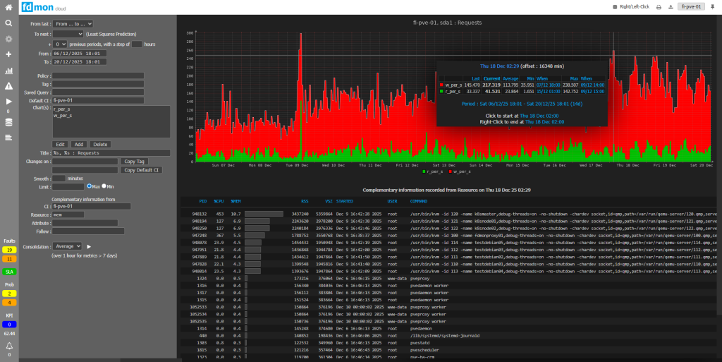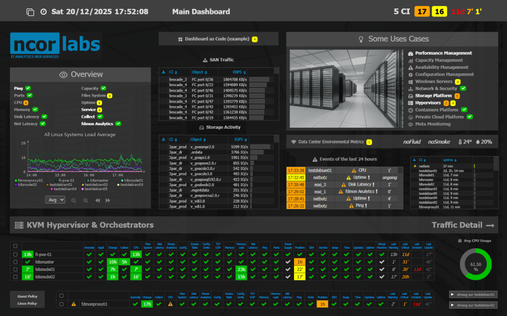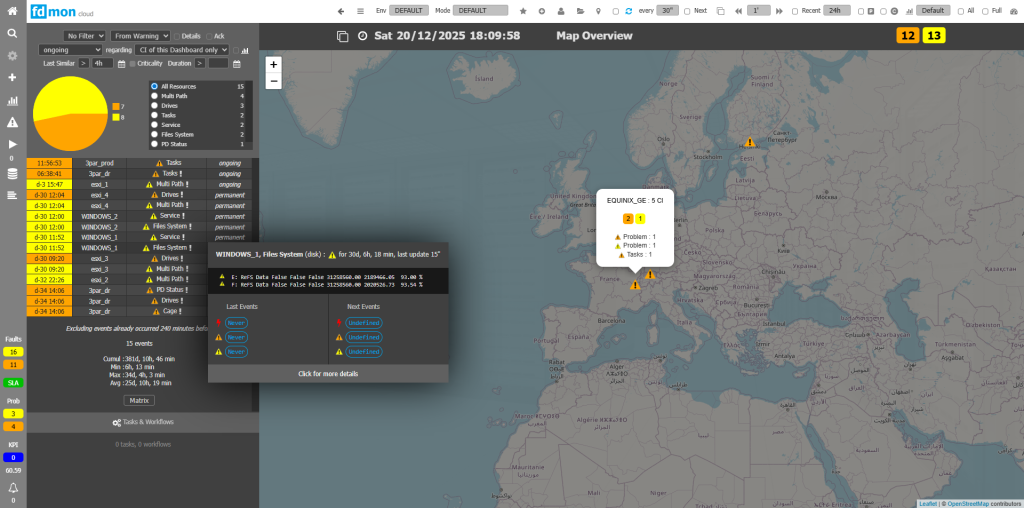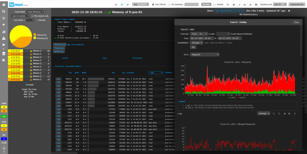 fdmon provides reports on components availability, stability, capacity, events, problems, logs, incidents resolutions, interactions, SLA compliance, etc …
